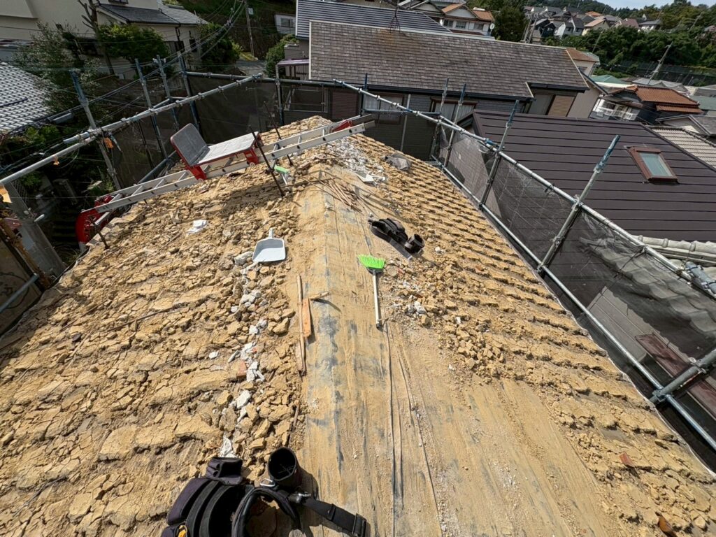 瓦メクッて、土取って・・・